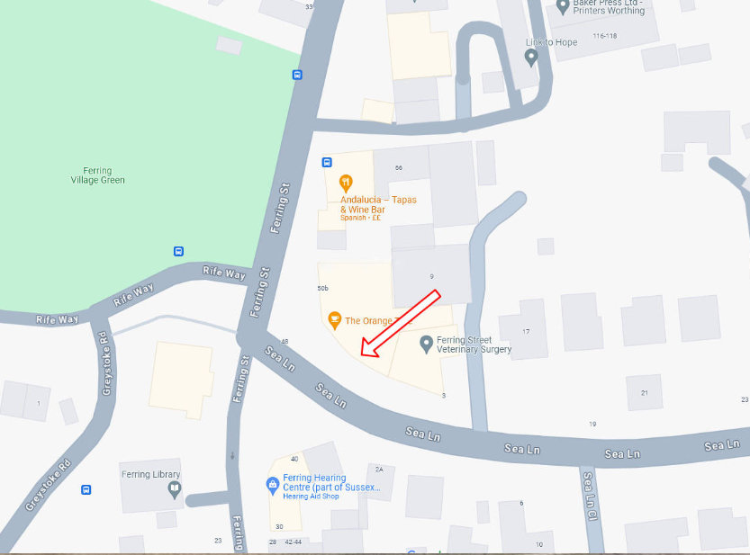 We are based in the heart of Ferring village above The Orange Tree Cafe on the junction of Sea Lane and Ferring Street.